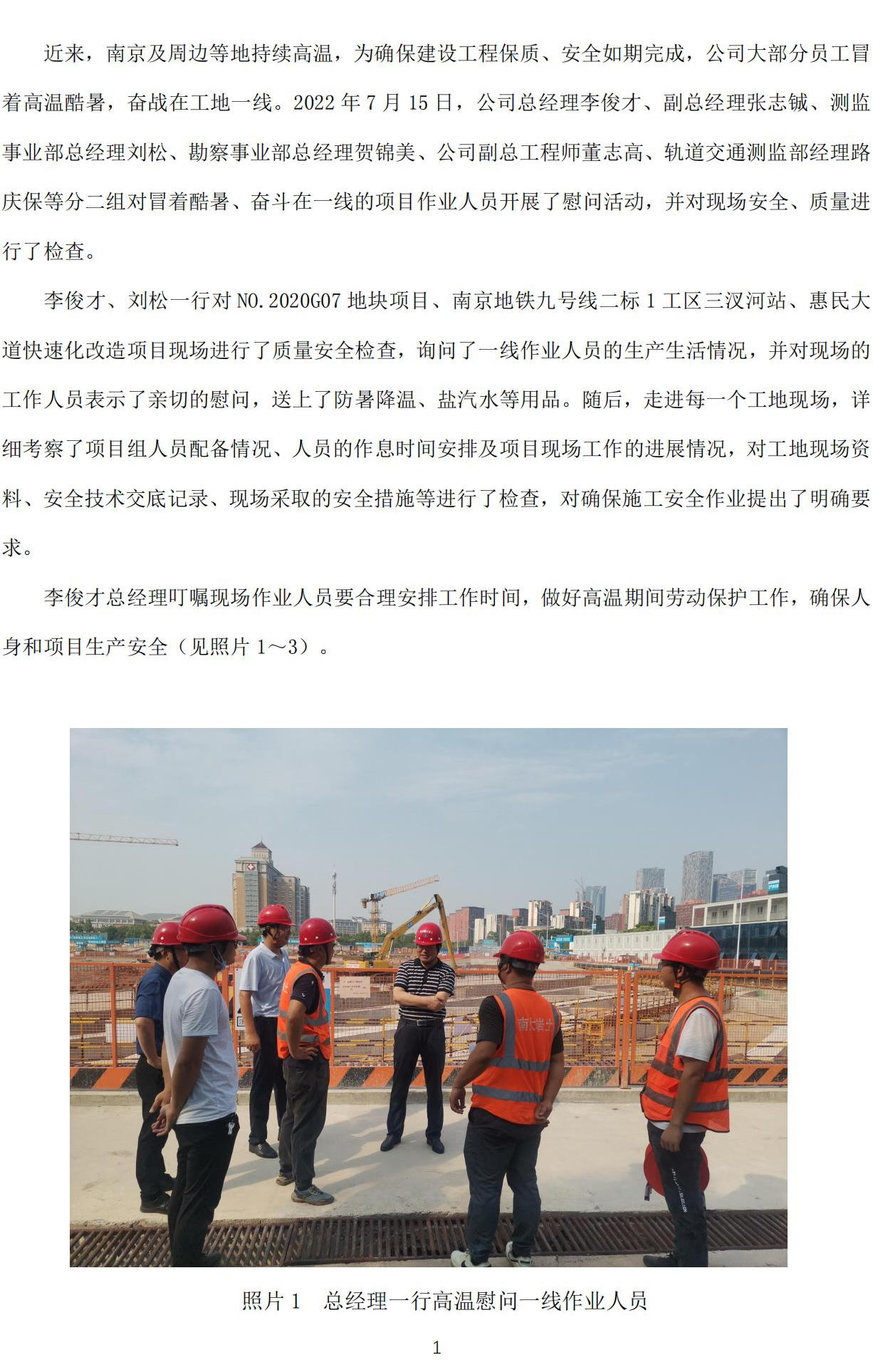 公司領(lǐng)導(dǎo)慰問(wèn)一線員工并進(jìn)行安全、質(zhì)量檢查簡(jiǎn)報(bào)