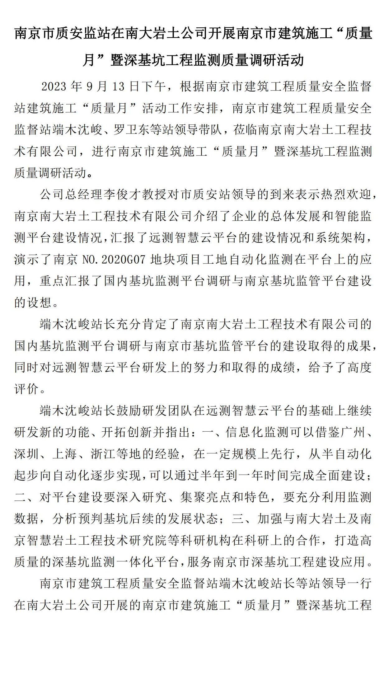 南京市建筑施工“質(zhì)量月”暨深基坑工程監(jiān)測質(zhì)量調(diào)研活動
